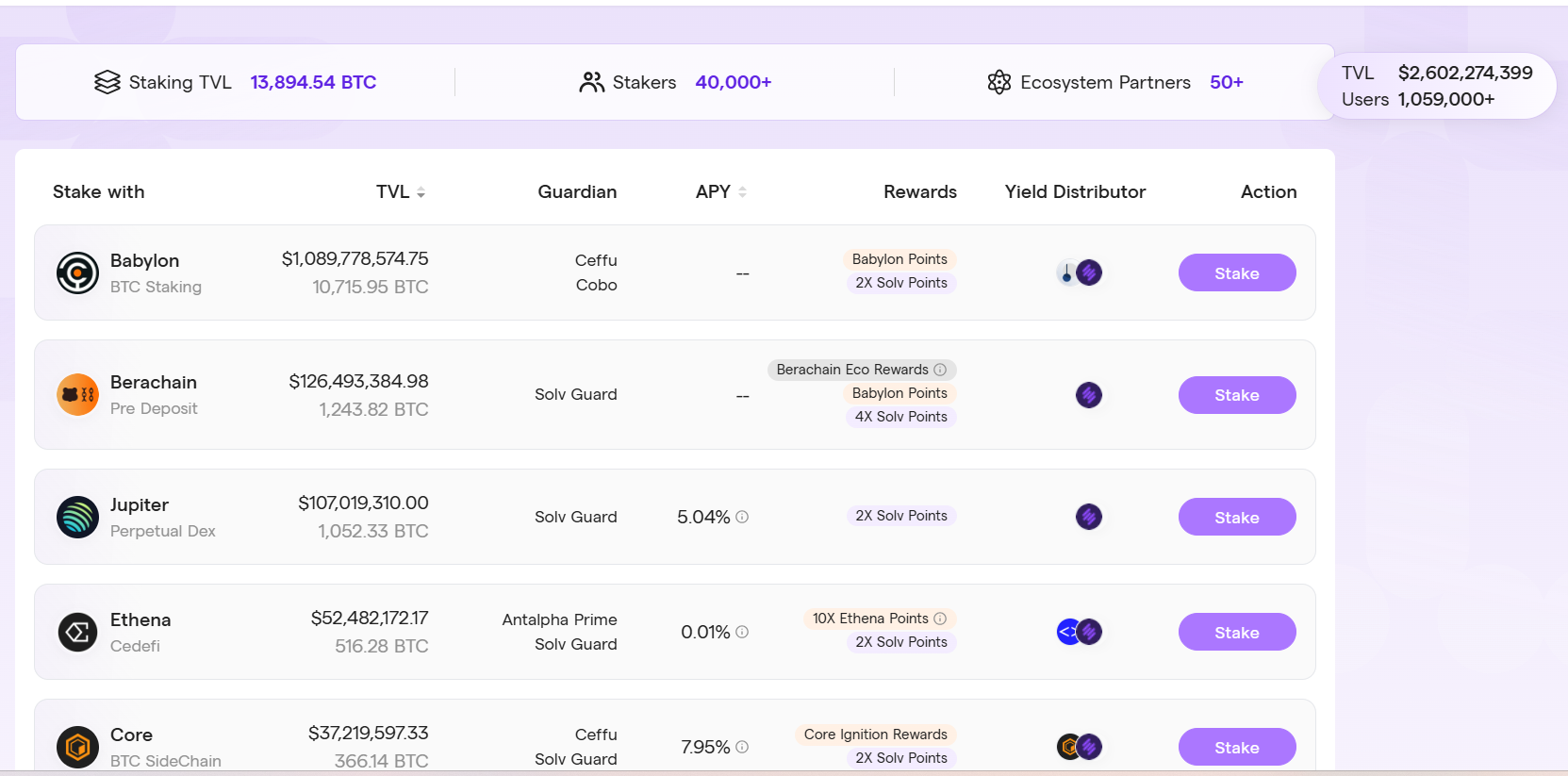 - Solv Protocol’s business model, in terms of solutions, is similar to LST projects (Lido, Renzo, EtherFi) on Ethereum. Solv is capitalizing on the early stages of BTCFi staking, addressing the issue of unlocking a significant amount of Bitcoin liquidity (over $2B USD) for DeFi and enabling native $BTC holders to earn stable yield percentages.
